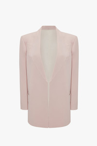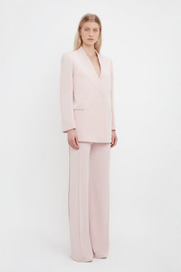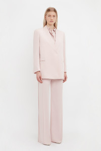 A reinterpretation of the classic blazer, the Peak Lapel Jacket provides a modern boxy fit with bonded front panel detailing. Cut-out pockets with raw edge seams are an unexpected and modern design feature. Styled with the and the Product Details - Crepe back satin and wool fabrication - Boxy fit jacket - Bonded front panel detailing - Inside tab fastening detail - Cut out pocket detail - Raw edge detailing - For a less boxy fit, we recommend taking a size down - The model height is 180cm and is wearing a size 8. - 100% wool - Dry clean only - Made in United Kingdom