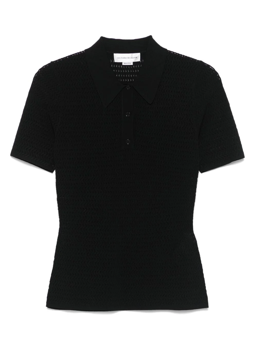 perforated polo top Highlights - Black - Short front button fastening - Polo collar - Short sleeves Imported Composition Viscose 83%, Polyamide 17% SIZE & FIT Model measurements Height 5 ft 9 in(1.75 m) Bust/Chest 34.64 in(88 cm) Hips 36.61 in(93 cm) Waist 26.37 in(67 cm) FittingInformation Designed for a close fit throughout Made with a midweight knit, this piece offers some stretch Washing instructions Dry Clean Only