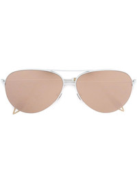 pilot-frame sunglasses Highlights - Silver-tone - Pilot frame - Tinted lenses - Double bridge - Nose pads - Curved tips - These glasses come with a protective case. Made in Italy Composition Metal 100% SIZE & FIT Measurement Bridge Width 0.51 in(1.3 cm) Lens Diameter 2.36 in(6 cm) Arm Length 5.7 in(14.5 cm)