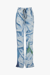 Pleat Detail Pyjama Trouser In Ice Blue Satin Flowers