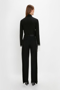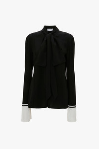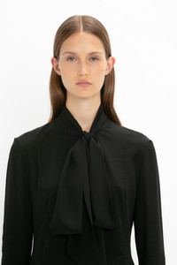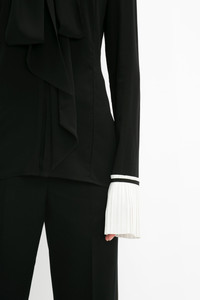 Product Details - Crepe de Chine - Long sleeved shirt - Contrast pleat detail on cuff - Tie detail collar - Pleat detail front - Concealed button fastening at front - Slim fit through the body and the sleeve - The model height is 180cm and is wearing a size 6 - 100% Silk - Specialised Dry Clean Only - Made in Portugal