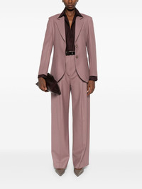 pleated tailored trousers Highlights - Mauve pink - Pleated front - Wide leg - High waist - Front concealed fastening - Side pockets Imported Composition Outer: Polyester 53%, Virgin Wool 43%, Elastane 4% Lining: Cotton 70%, Polyamide 30% SIZE & FIT Model measurements Height 5 ft 10 in(1.78 m) Bust/Chest 31.49 in(80 cm) Hips 37 in(94 cm) Waist 23.62 in(60 cm) FittingInformation Designed with a wide-leg cut, these trousers allow for a close fit at the waist and offer a loose and roomy fit over the leg Made from a midweight stretch fabric, this piece offers elasticity and flexibility when worn