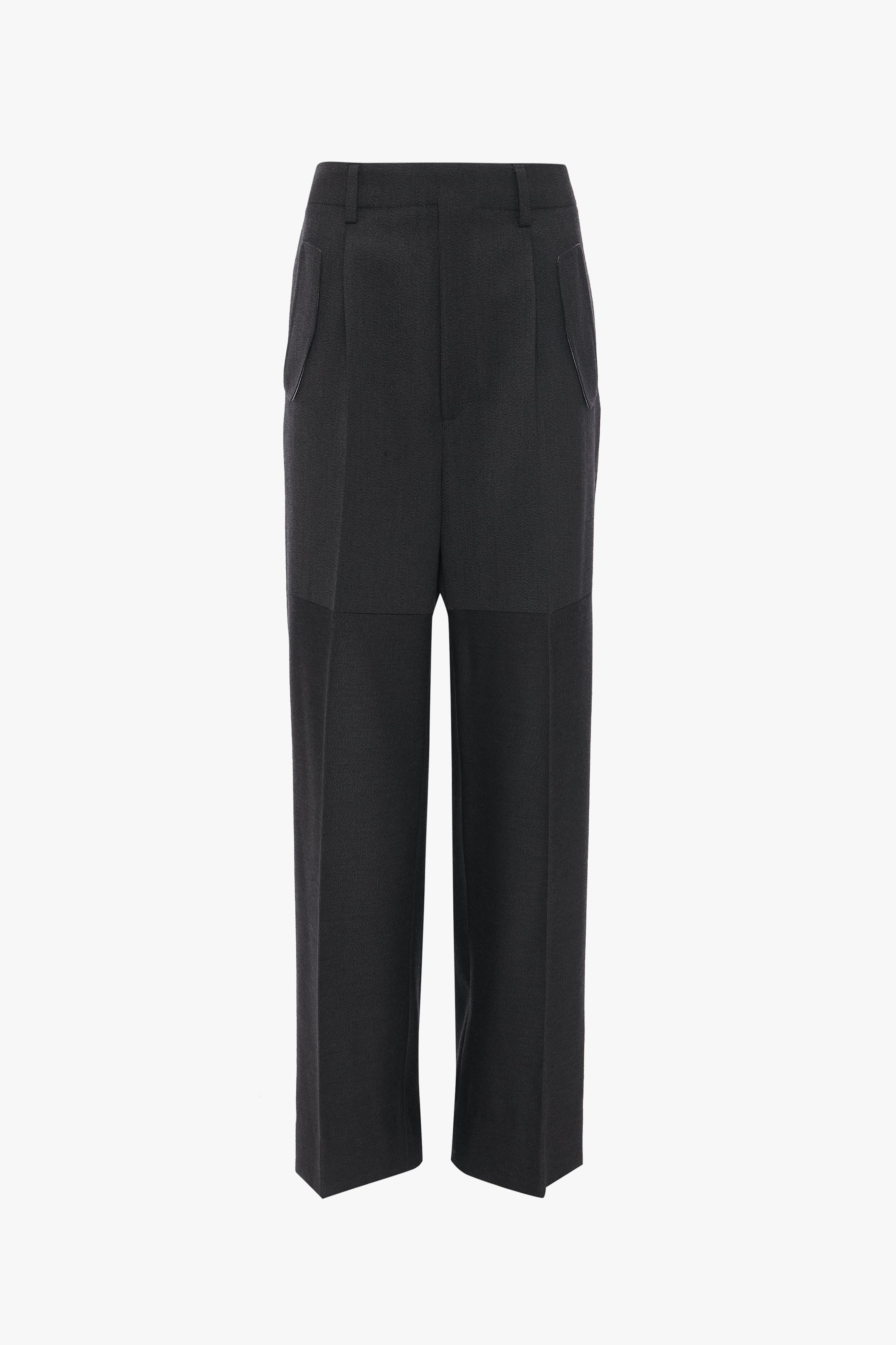 Suiting is imbued with fresh personality for the new season. Featured on the AW24 runway, the Pocket Detail Panelled Trouser is immaculately tailored from pure new wool. With horizontal leg seams and the reverse side of the fabric visible at the lower leg, it has a tactile point of difference. A wide, straight leg with low-rise waist creates a streamlined silhouette finished with front and back flap pockets and front and back leg creases. Product Details - Fitted at lower waist - Wide straight leg - Horizontal leg seam - Front and back flap pockets - Belt loops at waist - Zip fly front with hook & bar closure - Back yoke detail - The model is 178cm and is wearing a size 6 - Main: 100% Wool, Lining: 70% Cotton 30% Polyamide - Dry clean only - Made in Portugal