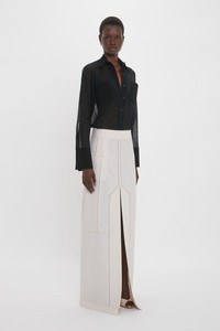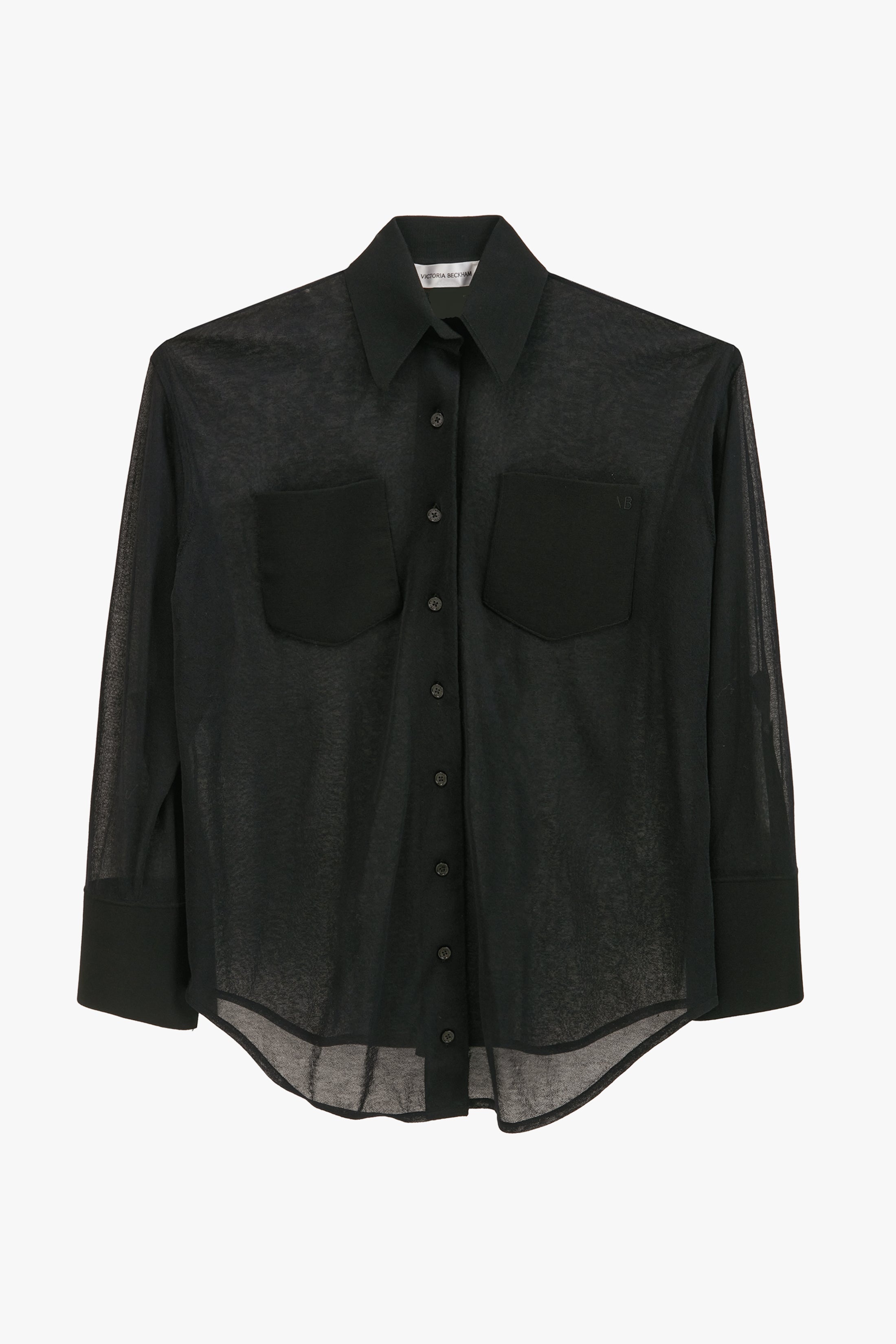 Crafted in a lightweight semi-sheer fine-gauge knit, the Pocket Detail Shirt has an ethereal appeal. Front patch pockets imbue it with a distinctive personality, while the collared neckline and overlay placket detail reflect the house’s penchant for tailored design details. Its relaxed fit and open cuffs have a casual charm. Product Details - Lightweight, semi-sheer fine-gauge knit - Front patch pockets - Tonal VB monogram embroidery - Centre front button fastening - Collared neckline - Open cuff and plackets - Relaxed fit. For a more fitted silhouette, we advise taking a size down - The model height is 178cm and is wearing a size 6 - 85% Cotton 15% Polymaide - Dry Clean Only - Made In China - Front Body length from SNP = 71cm - Sleeve Length from Shoulder Point = 51cm