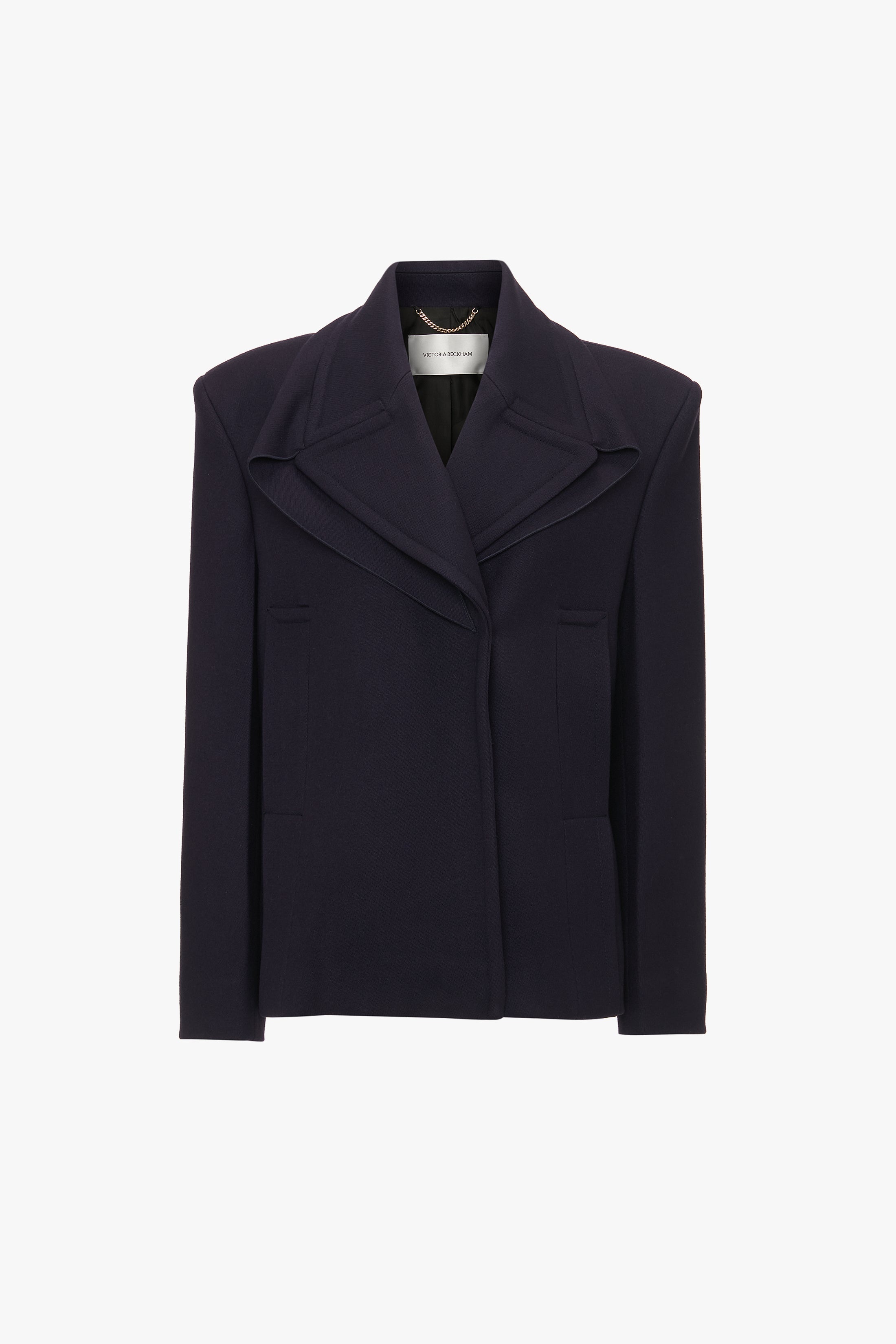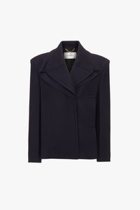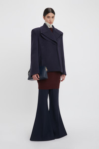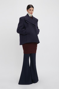 A favourite of Victoria’s and a highlight from the AW24 runway, the Pointed Shoulder Peacoat embodies the brand’s reputation for elevated outerwear. Embracing masculine tailoring and imbuing it with a feminine sensibility, it has an exaggerated lapel, flamboyant swing back and topstitch detailing. Meticulously tailored from a cavalry twill wool, it is a dynamic option for everyday wear. Product Details - Double breasted with concealed buttons - Wide collar and lapel detail - Front welt pockets - Swing back jacket - Wide topstitch detail - Shoulder yoke detail - The model is 178cm and is wearing a size 6 - Main: 100% Virgin Wool, Lining: 100% Viscose, Lining 2: 70% Cotton 30% Polyamide - Dry clean only - Made in Lithuania