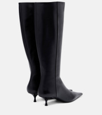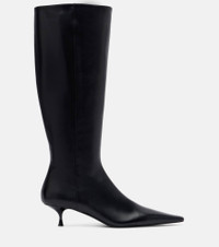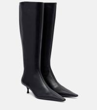 It turns out confidence can be bought, and it's got a Victoria Beckham label on it. Made in Italy from supple leather, the Pointy knee-high boots are so-named for their pointed-toe silhouettes and rest atop 45mm heels. Product Details - Upper: goat leather - Lining: leather - Sole: leather insole and sole - Toe shape: pointed toe - Made in Italy - Includes: dust bag, shoe box - Designer color name: Black - Item color: black - Hardware color: gold - Closure: zipped side - Item number: P01101038 Size & Fit - True to size - Narrow - Half sizes please take the next size up - European sizes - 4,5cm-2" heel (size EU 38) - 40cm-15.5" shaft height (size EU 38) - 36cm-14" shaft width (size EU 38) - shaft width measured on largest part of boot