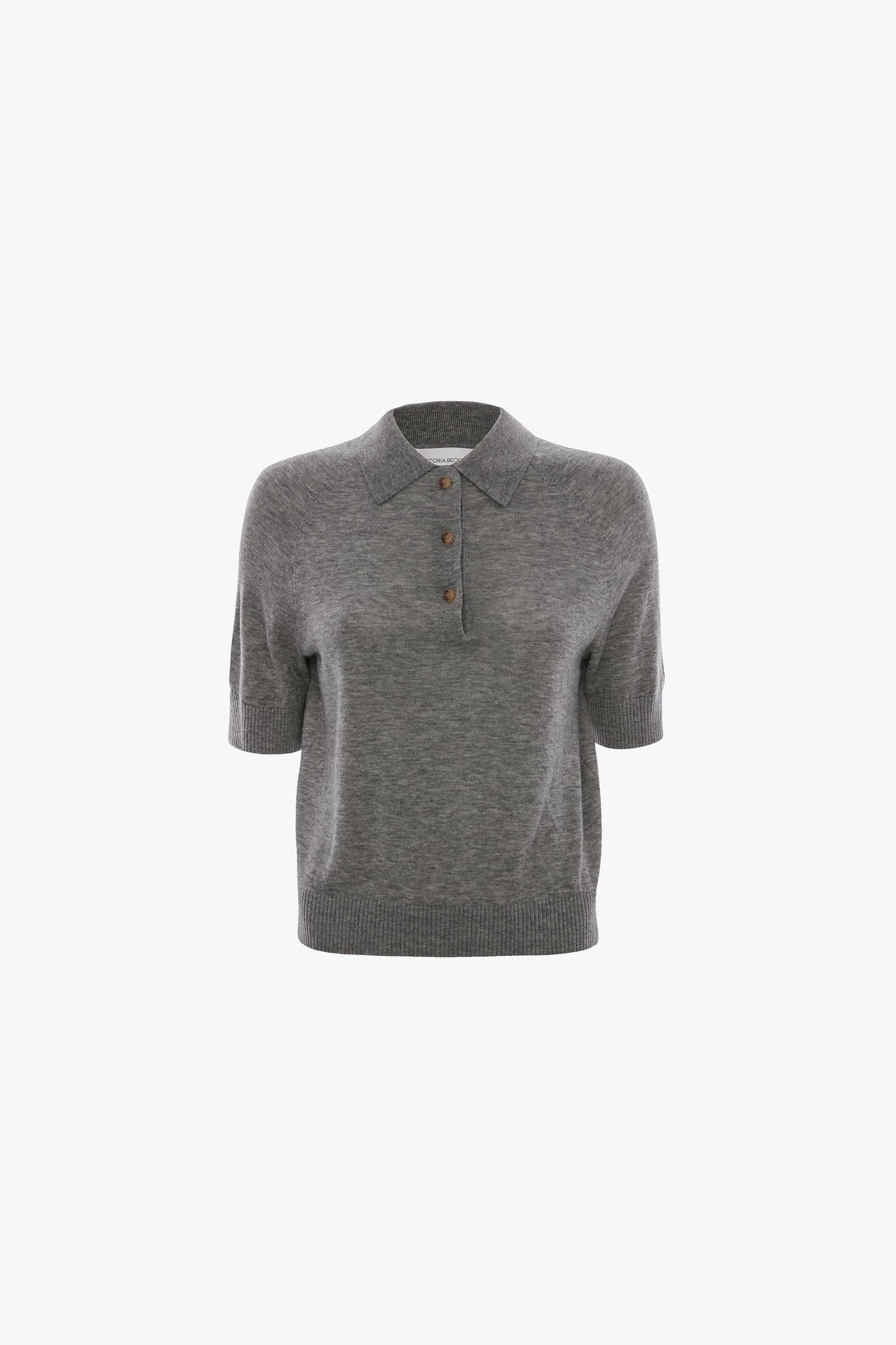 Casual but refined, the Polo Top in Grey Marl is crafted from a lightweight, fine-gauge knit. It has a traditional collar with buttons, relaxed raglan sleeves and a ribbed trim. It is finished with a Victoria Beckham embroidered tape at the back of the neck. Size & Fit - Fits true to size, take your normal size - The model is 5'11’’/180cm and is wearing a size XS Product Details - Lightweight fine guage knit - Integral rib trims - Polo collar with buttons - Back neck VB logo embroidery - Raglan sleeve - 100% Extrafine Merino - Made in China