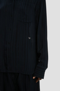 Inspired by the comfort and ease of loungewear, the Pyjama Shirt in Navy is an elevated take on an everyday item. Reinvented in a tactile ribbed jacquard, the Pyjama Shirt has a softly structured silhouette with patch pockets, cuff plackets and a back yoke with tonal topstitching. Size & Fit - Oversized fit: This style is designed to create an relaxed silhouette - The model is 5'11’’/180cm and is wearing a size 6 Product Details - Rib jacquard fabrication - Back yoke with tonal topstitch - Singular button cuffs - Patch pocket - Contrast VB logo embroidery - 100% Viscose - Made in Portugal