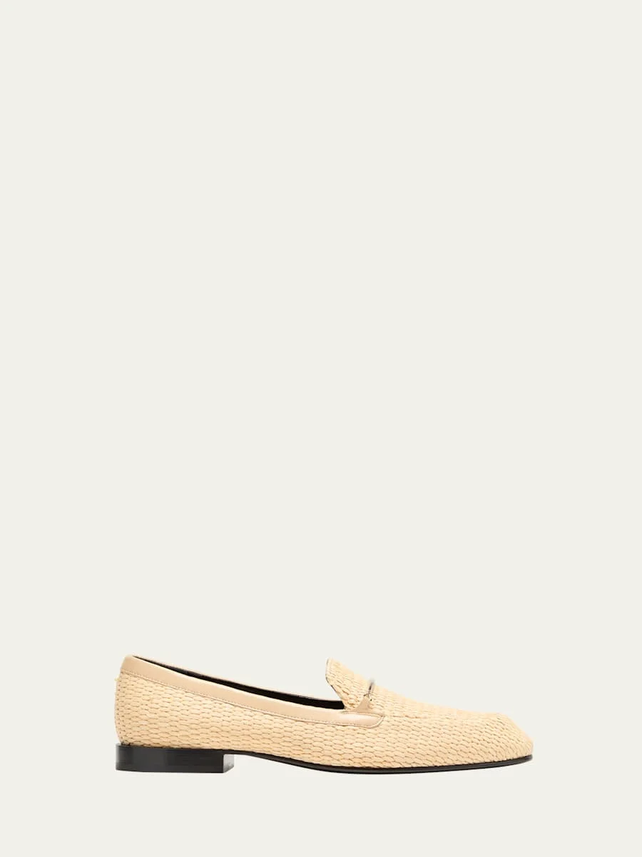 Victoria Beckham woven raffia loafers with metal strap accent 1.38 in / 35 mm flat heel Square apron toe Notched vamp Slip-on style Leather outsole Lining: Goat leather Spot clean Made in Italy Online Inquiries: BGS21_X6CQZ| Store Inquiries: #4669913