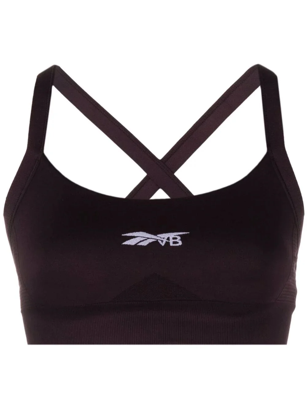 jacquard-logo sports bra eggplant purple jacquard logo motif rear criss-cross straps round neck sleeveless cropped stretch-design Imported Composition Polyamide 90%, Spandex/Elastane 10% SIZE & FIT Model measurements Height 5 ft 10 in(1.78 m) Bust/Chest 33.46 in(85 cm) Hips 36.22 in(92 cm) Waist 23.22 in(59 cm) FittingInformation This piece fits small – you might want to get one size up Cut for a close fit Made with a mid-weight stretch fabric Washing instructions Machine Wash