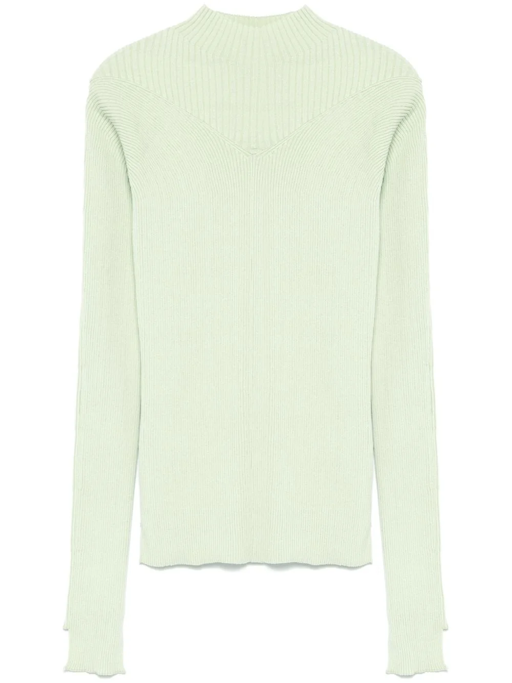 ribbed top Highlights - Light green - High neck - Long sleeves Imported Composition Cotton 63%, Polyamide 34%, Elastane 3% SIZE & FIT Model measurements Height 5 ft 11 in(1.8 m) Bust/Chest 32.67 in(83 cm) Hips 36.22 in(92 cm) Waist 24.4 in(62 cm) FittingInformation Designed for a close fit throughout Made with a midweight knit, this piece offers some stretch Washing instructions Dry Clean Only