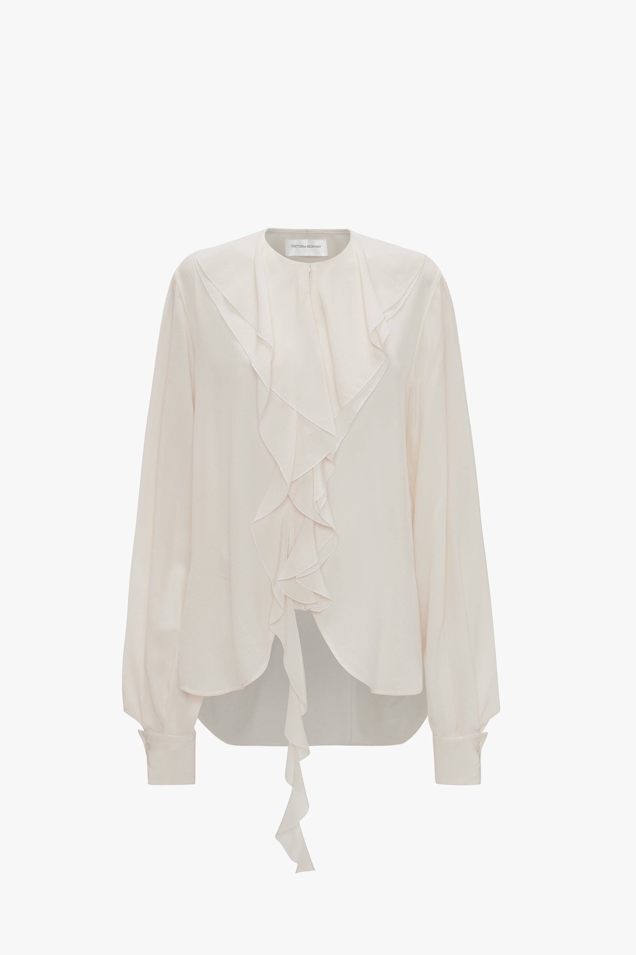 Styled with the and the Product Details - Crepe de chine fabrication - Ruffled neckline with tie and frill detailing - Relaxed fit, for a more fitted silhouette take a size down - The model height is 180cm and is wearing a size 6 - 100% Silk - Dry clean only - Made in Portugal