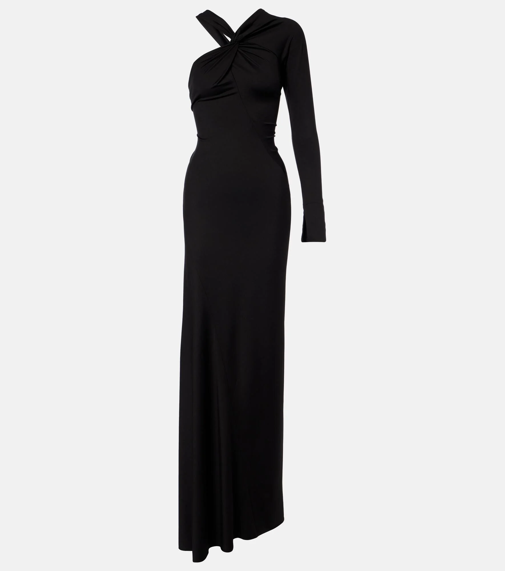 Victoria Beckham's eponymous label centers around chic, understated styles. Featuring elegant ruching at the top, this maxi dress is made from a fluid fabric and comes in a one-shoulder silhouette. Product Details - Material: 90% polyester, 10% elastane - Care instructions: dry clean - Made in Portugal - Color: black - Designer color name: Black - Closure: concealed zipped side - Item number: P01152937 Size & Fit - True to size - Fitted - Stretchy fabric - The model seen in the picture is 178cm-5'10" and wearing a size UK 8