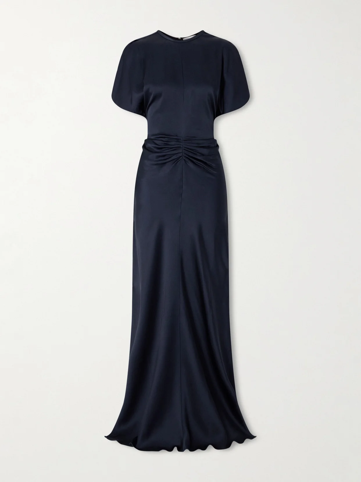 A discerning eye for detail defines Victoria Beckham's collections. This dress is cut from fluid satin that's ruched at the waist to highlight your figure. Pull the lightly puffed sleeves into focus with a stack of bracelets.