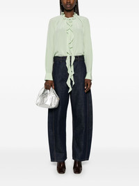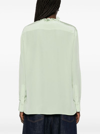 ruffled shirt Highlights - Jade green - Concealed front button fastening - Draped detailing - Long sleeves - Buttoned cuffs Imported Composition Silk 100% SIZE & FIT Model measurements Height 5 ft 11 in(1.8 m) Bust/Chest 32.67 in(83 cm) Hips 36.22 in(92 cm) Waist 24.4 in(62 cm) FittingInformation Designed to be unstructured, offering a loose fit throughout Made from a lightweight non-stretch fabric
