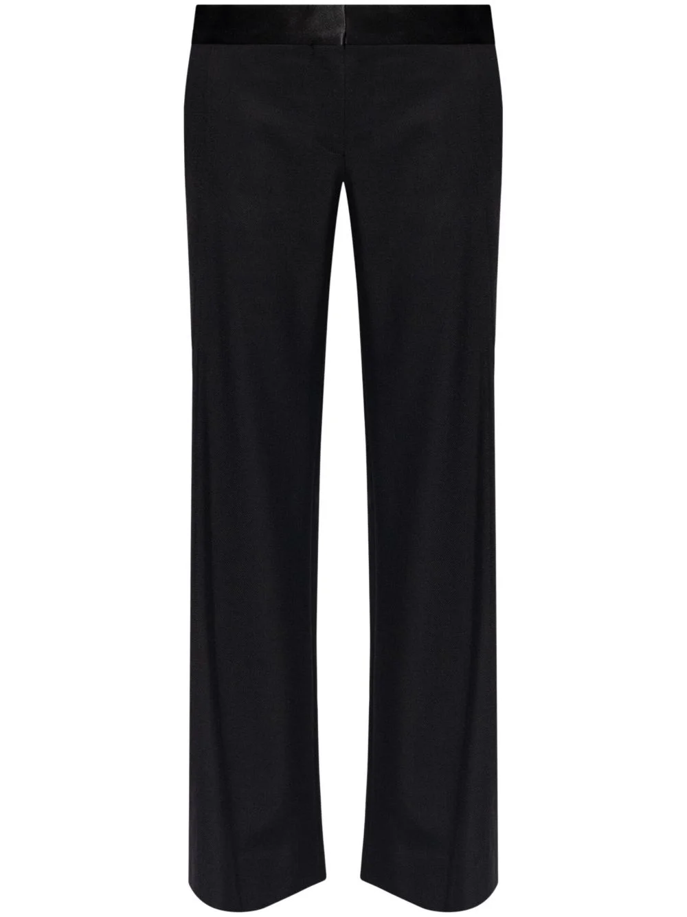 tailored trousers Highlights - Black - Concealed front fastening - Two side slit pockets - Pressed crease Imported Composition Polyester 55%, Virgin Wool 45%