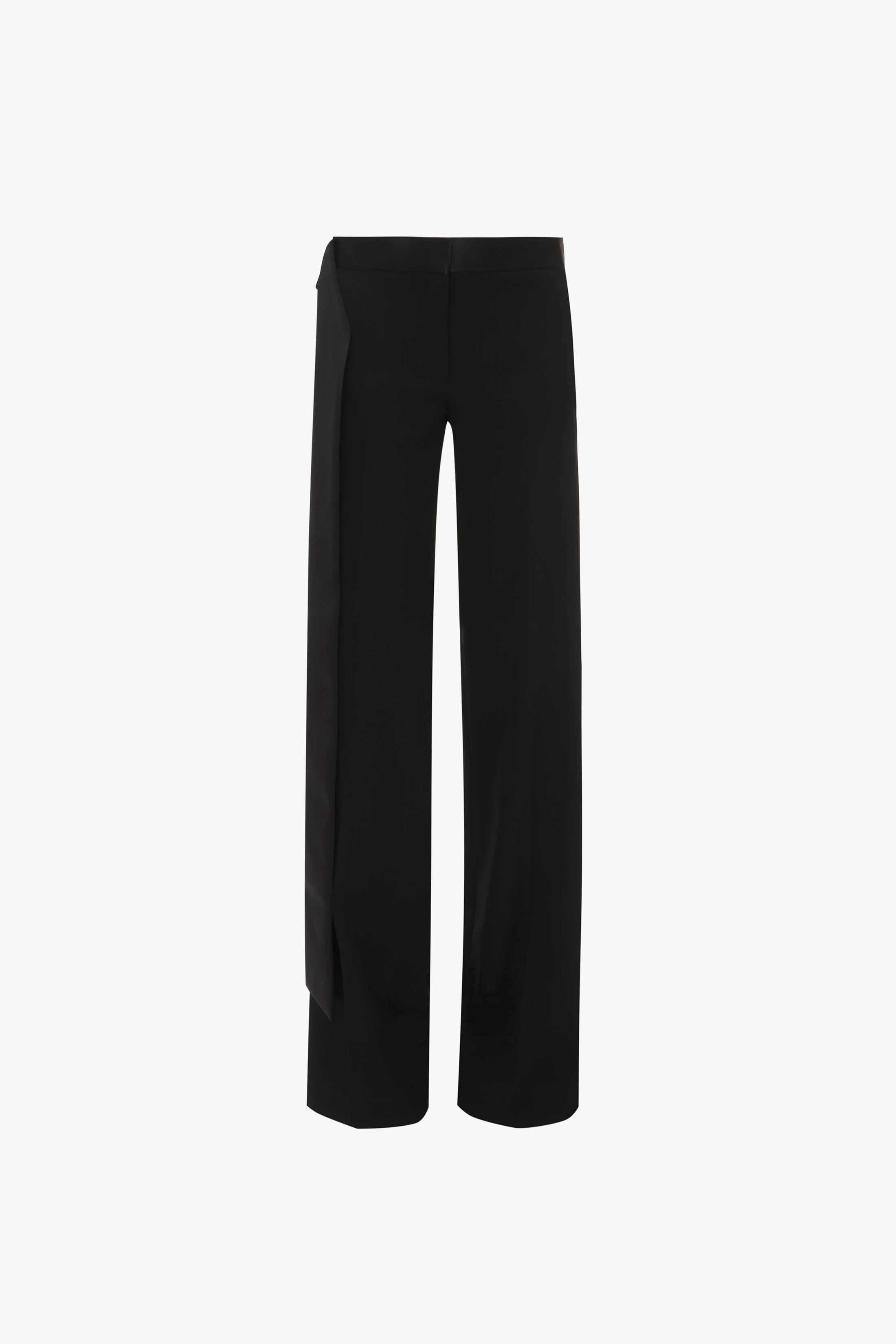 - Grain Depoudre Blend - Contrast satin waistband and belt loops - Side tie in contrast satin - Front zip fly with double hook & bar closure - Slanted front pockets - Back pockets with contrast satin welts - 55% Polyester 45% Wool - Dry clean only - Made In Portugal New to the Victoria Beckham tailoring edit, the Satin Waistband Trouser in Black marries masculine and feminine beautifully. Immaculately tailored with a contrasting satin waistband resonant of tuxedo style, the Satin Waistband Trouser is imbued with an elegant satin side tie that falls flamboyantly to midi length. A highlight of Victoria’s for SS25, these wear-anywhere trousers are finished with slanted front pockets and back pockets with satin welts. SIZE & FIT - Fits true to size, take your regular size - The model height is 5'10''/179cm and is wearing a size 6