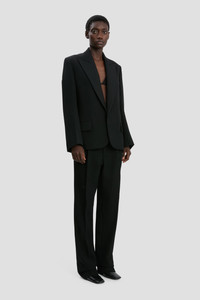 Presented in classic Black, the Sculptural Sleeve Jacket offers a deconstructed take on traditional masculine tailoring. Crafted from 100% wool and fully lined with distinctive, longer-length sleeves, it has an architectural sensibility. An oversized fit imbues it with a nonchalant undertone, while discreet design details, including a three-hole button at each cuff with a contrasting white stitch and a centre back vent, add an elevated finishing touch. Size & Fit - Designed to fit oversized. For a more fitted look, take one size down - The model height is 5'11’’/180cm and is wearing a size 6 Product Details - Sculptural shaped long sleeves with button cuff detail - Front flap pocket detail - Centre back vent - 100% Virgin Wool - Dry clean only - Made in Italy