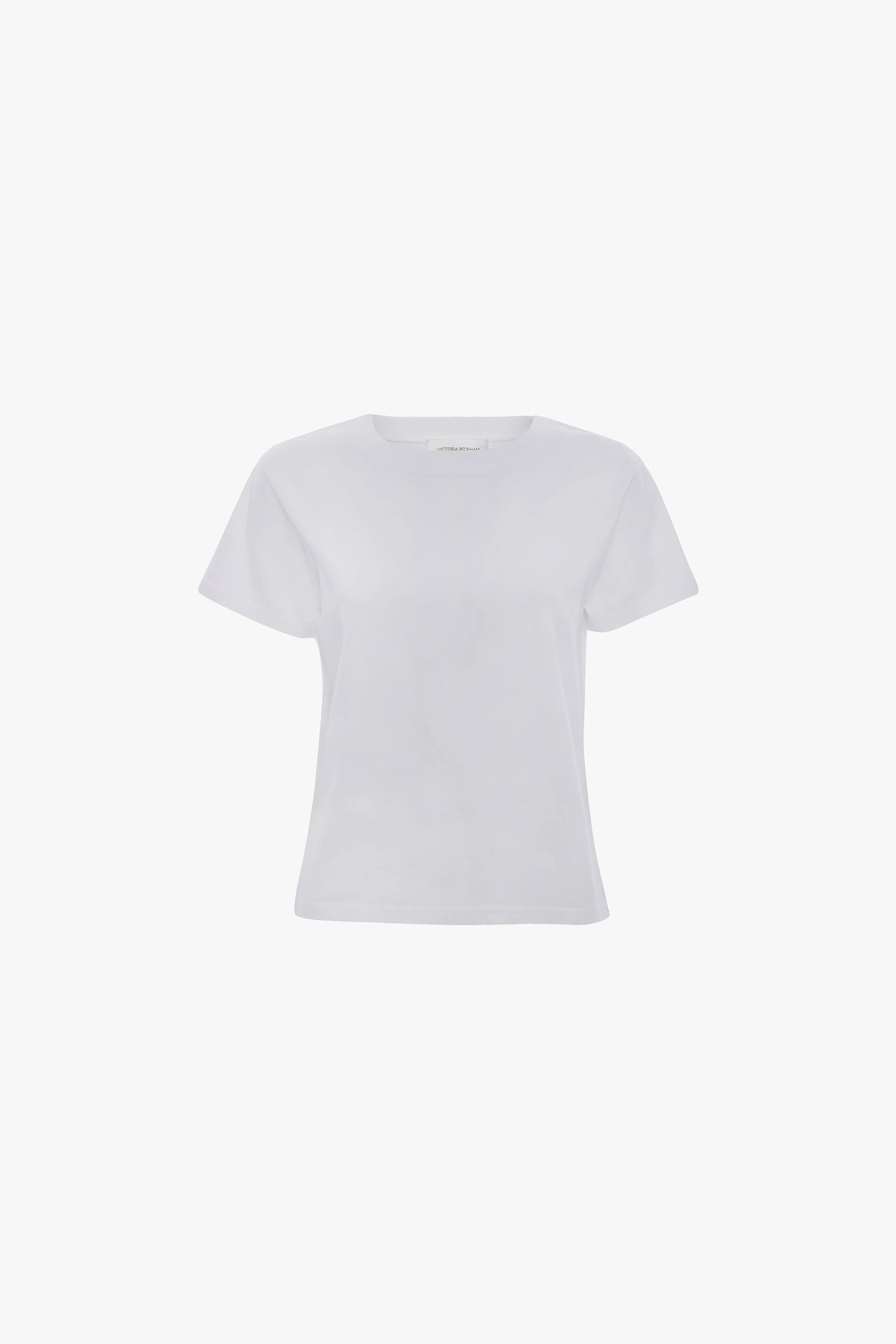 - Organic cotton jersey - Crew neckline - Boxy fit - VB logo embroidery - 100% Organic Cotton - Made in Portugal Crafted from 100% organic cotton for comfort and breathability, the Boxy T-Shirt in crisp White has a crew neckline and a straight fit for a boyish silhouette. It is finished with the house’s signature Victoria Beckham embroidered monogram at the back of the neck. SIZE & FIT - The model is 5'10’’/178cm and is wearing a size XS - Fits true to size, take your normal size