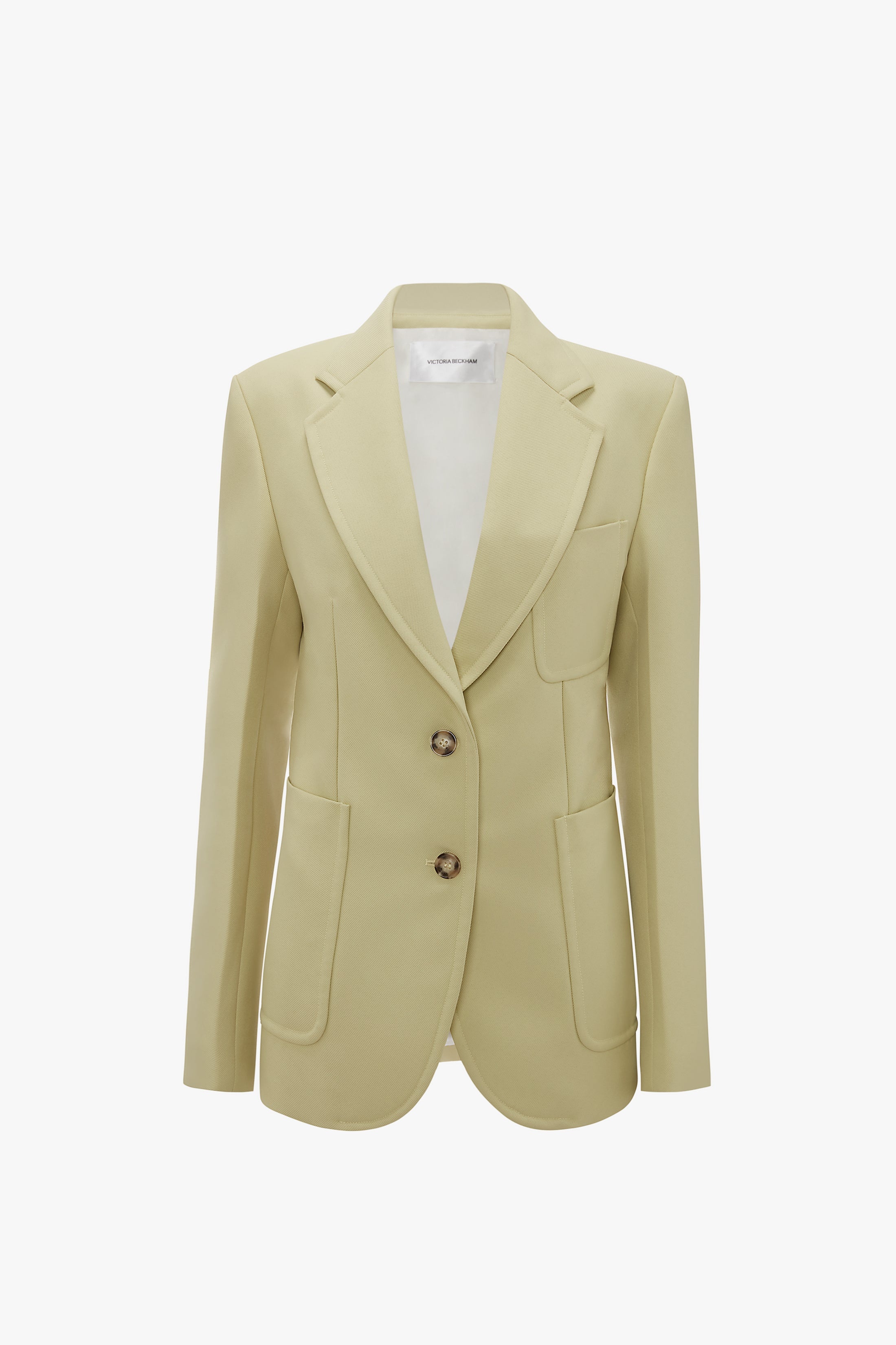 Our classic Patch Pocket Jacket has been reworked for the new season in a feminine lemon shade that nods to the colour palette of 1980s neo-noir classic American Gigolo. The silhouette is vintage-inspired, sitting longline with wide lapels, patch pockets and two contrasting buttons. The gabardine fabric is structured yet lightweight with the ability to transition through the seasons. Style as a full suit, with the coordinating tailored trousers, or with contrasting block-colour knitwear. Product Details - Tech Gabardine Fabrication - Main: 100% Polyester - Specialised Dry Clean Only - Iron One Dot - Fitted silhouette, take your regular size - The model's height is 177cm and is wearing a UK size 8