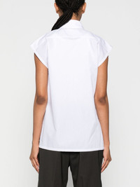 panel-detail sleeveless shirt Highlights - White - Organic cotton - Poplin texture - Panel detail - Raw-cut finish - Classic collar - Concealed front press-stud fastening - Sleeveless - Side slits - Step hem Imported Composition Organic Cotton 100% SIZE & FIT Model measurements Height 5 ft 10 in(1.78 m) Bust/Chest 32.67 in(83 cm) Hips 35.43 in(90 cm) Waist 23.22 in(59 cm) FittingInformation Designed for a relaxed fit, this piece allows for comfort and movement when worn Made from a midweight non-stretch fabric This piece fits true to size – take your usual size