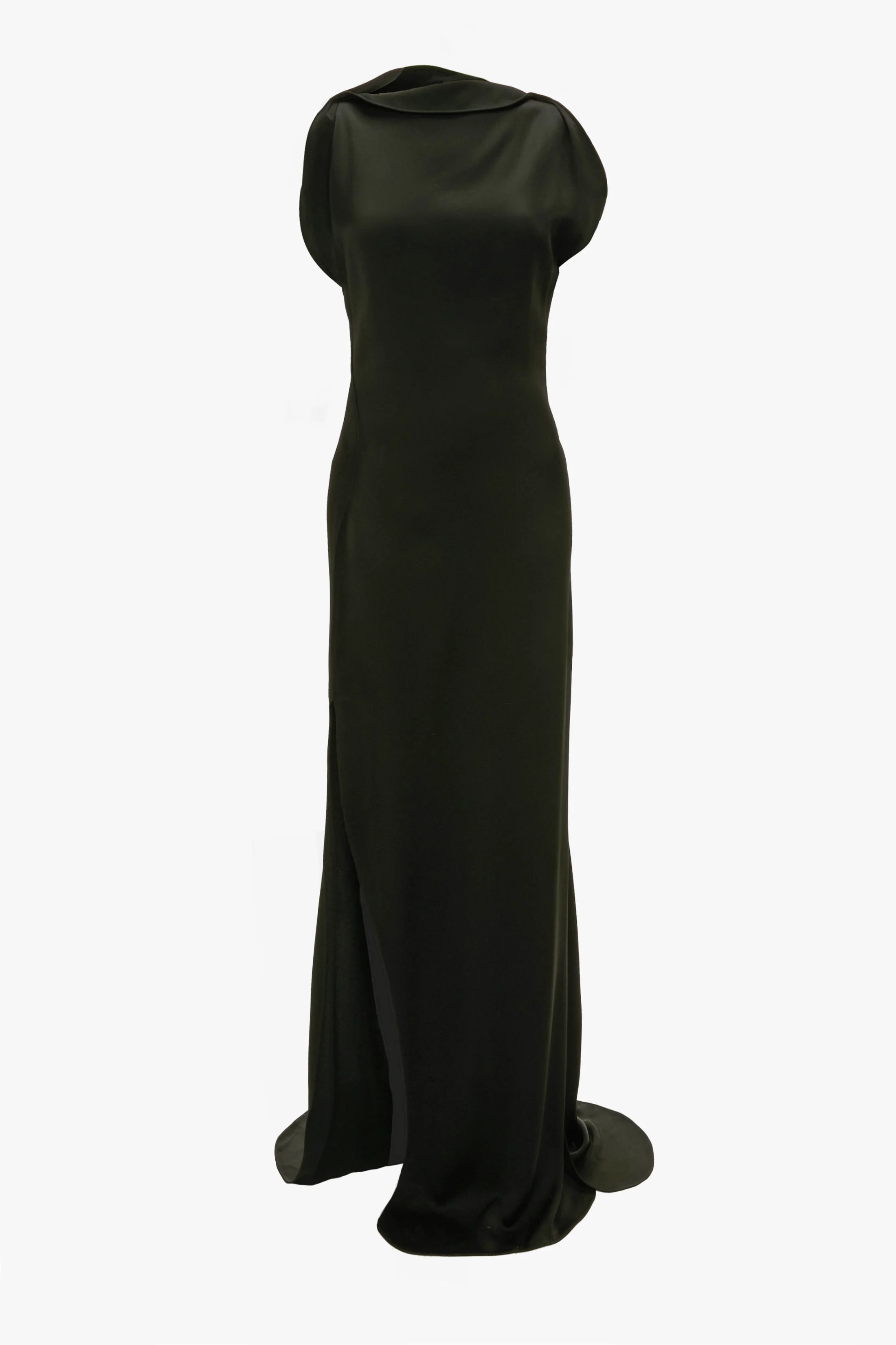 A dramatically draped neckline with piping detail that continues around the armholes and down to the skirt hem brings theatrical flair to this floor-pooling gown with statement train. Crafted from crepe back satin for an easy fluidity, the Sleeveless Cord Split Side Dress is given a distinctive finish by virtue of a curved seam through the right side. Size & Fit - Fitted through bust, waist and hip - Fits true to size, take your regular size - The model height is 5'11’’/180cm and is wearing a size 6 Product Details - Crepe back satin, cord detail gown - Draped neckline with piping detail that continues around armholes and through to skirt hem - Curved hem with train at back - 71% Acetate 29% Viscose - Dry clean only - Made in Portugal