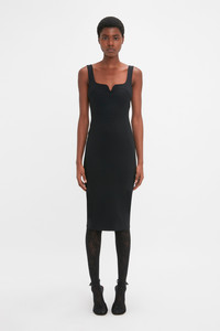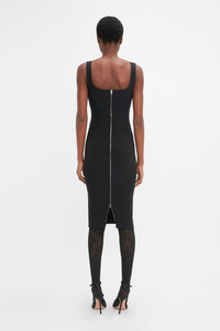 Bodice-lined and crafted from a stretch, double wool crepe, this Sleeveless Fitted T-Shirt Dress creates a svelte silhouette. Designed in classic Black for enduring appeal, it has an exposed, double-ended zip at the back for a provocative point of difference and an attractive sweetheart neckline for a gentle suggestion of romance. Styled with the VB Monogram Lace Tights, Destiny Sandal and the Mini Chain Pouch Size & Fit - Fits true to size, take your regular size - The model height is 180cm and is wearing a size 6 Product Details - Double wool crepe fabric with slight stretch - Back exposed double ended zip at back - Bodice lining - Main: 45% Polyester 36% Virgin Wool 16% Polyamide 3% Elastane. Lining: 100% Polyester - Dry clean only - Made in Portugal