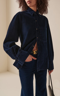 PRODUCT DETAILS - Regular fit, stand collar and long sleeve, shoulder detailing, with patch pockets on both sides - Front Button Closure - Composition: 100% Cotton - Color: navy - Dry Clean Only - Made In: Italy - Fall-Winter '25