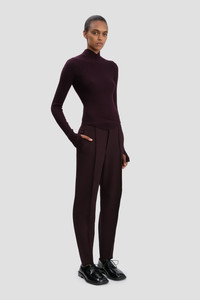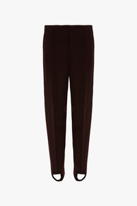 Elevating athleisure wear design codes, the Slim Sculptural Trouser in Deep Mahogany is a formal trouser with equestrian stirrup detail, offering a contemporary twist on traditional tailoring. Adjustable to allow for different leg lengths, the stirrup is elasticated for absolute comfort. A double wool crepe fabrication and front and back darts give the trouser its streamlined cut, which is enhanced by slick side seam pockets. Size & Fit - Fits true to size, take your regular size - The model height is 5'11’’/180cm and is wearing a size 6 Product Details - Mid rise - Side seam pockets - 100% Wool - Dry Clean Only - Made in Lithuania