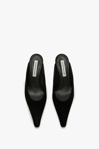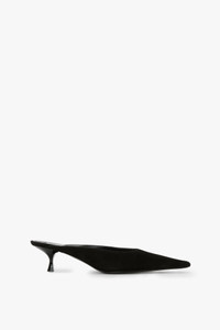 A pinched, closed-toe design, which is elongating and elegant, imbues the Kitten Heel Mule In Black suede with its distinct personality. A contrasting black lacquered 45mm heel adds a contemporary point of difference, while luxurious leather lining brings a tactile premium finish. A padded insock ensures absolute comfort, while a woven brand label stitched to the insole adds a subtle but sophisticated finishing touch. Size & Fit - 45mm heel - Fits true to size, take your regular size Product Details - Pinched, elongated closed toe shape - Black lacquered heel - Suede upper - Leather lining - Padded in-sock for added comfort - Woven brand label stitched to the insole - Suede - Made in Italy