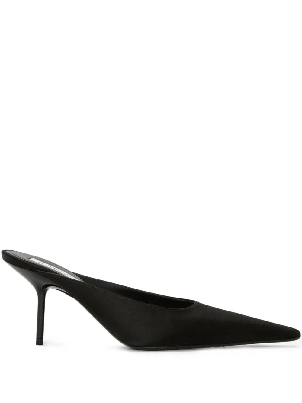 75mm Sloan pointed-toe stiletto mules Highlights - Black - Satin - Stiletto heel - Pointed toe - Slip-on style - Low-cut vamp Made in Italy Composition Outer: Satin 100% Lining: Leather 100% Sole: Leather 100%