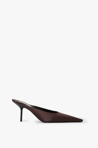 Sloan Stiletto Mule In Dark Brown Satin