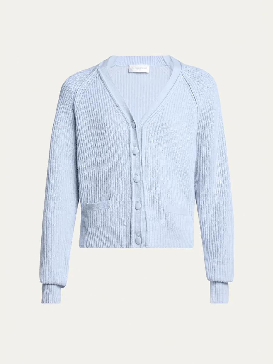 Stepped Hem V-Neck Cashmere Wool Cardigan