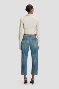 Presented in Washed Blue for the new season, the Bernie Jean has a mid-rise waist, straight leg and is crafted from 100% cotton for a true-to-size fit. Utilitarian details include branded denim shank buttons, branded rivets and a branded leather patch. An ankle-revealing hemline adds a feminine sensibility to the silhouette. Size & Fit - Relaxed straight leg jean - Inseam: 29”/ 74.5cm - Fits true to size, take your regular size Product Details - Washed blue denim - Mid rise, straight leg jean - Tobacco topstitching details - Branded silver denim shank button - Branded leather patch on the waistband - Fits true to size, take your regular size - 100% Cotton - Machine wash at 30C - Made in Italy