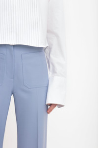 Elevating the everyday is part of the Victoria Beckham brand DNA and the Cropped Tux Shirt brings a fresh perspective to traditional masculine shirting. One of Victoria’s favourite pieces for SS25, it has a striped bib feature, striped collar and cuffs and a cropped hemline for a feminine twist. Crafted from organic cotton, it embodies an informality that feels fresh and modern. Size & Fit - Cropped length - Fits true to size, take your regular size - The model height is 5'10''/179cm and is wearing a size 6 Product Details - Cotton shirt - Stripe bib detail - Stripe fabric on the collar and cuffs - 100% Organic Cotton - Machine wash at 40C - Made In Turkey