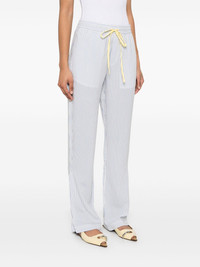 striped pajama-style trousers Highlights - White - Elasticated drawstring waistband - Two side slash pockets - Rear patch pocket Imported Composition Outer: Viscose 69%, Silk 31% Lining: Polyester 100% SIZE & FIT Model measurements Height 5 ft 10 in(1.78 m) Bust/Chest 32.67 in(83 cm) Hips 35.43 in(90 cm) Waist 23.22 in(59 cm) FittingInformation Designed with a flared hem, these trousers allow for a close fit at the waist with a slim fit over the leg and widening towards the hem Adjust this piece’s waistband to your preference using the drawstring Made from a lightweight non-stretch fabric