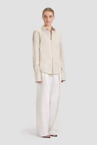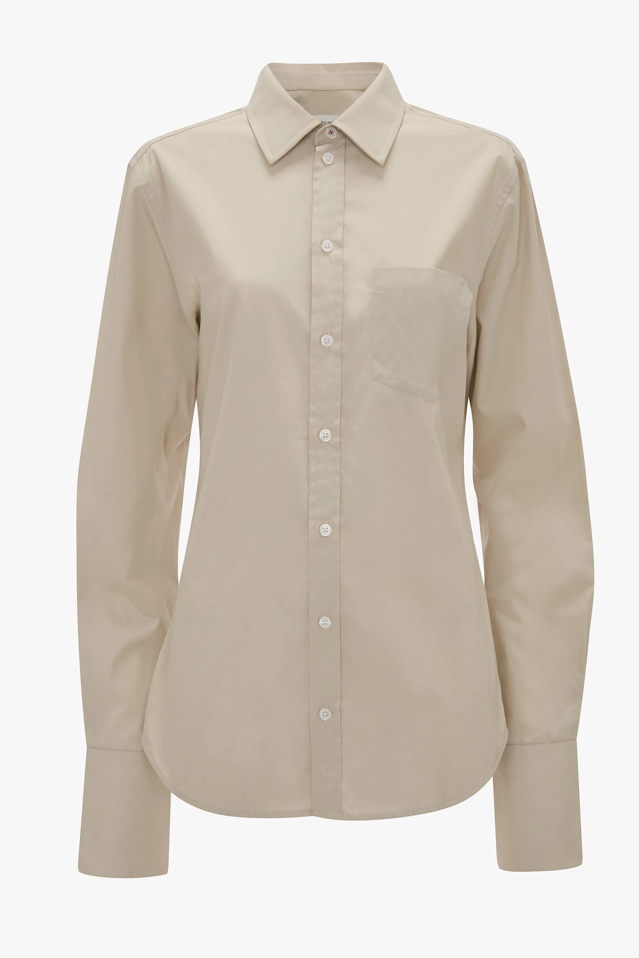 This 100% cotton shirt imbues a menswear classic with fresh energy. Presented in a soft shade of Pumice, it has a contemporary cropped length and traditional collar, front-button fastening and chest pocket. An embroidered Victoria Beckham logo in a contrasting thread adds an attractive finishing touch. Styled with the Cinched Trouser Size & Fit - The model height is 5'10''/178cm and is wearing a size 8 - Fits true to size, take your regular size Product Details - Light cotton fabric - Chest pocket - Front button fastening - Button cuff - Collar neckline - VB embroidery in contrast thread - Back waist martigale detail - 100% Cotton - Dry clean only - Made in Turkey