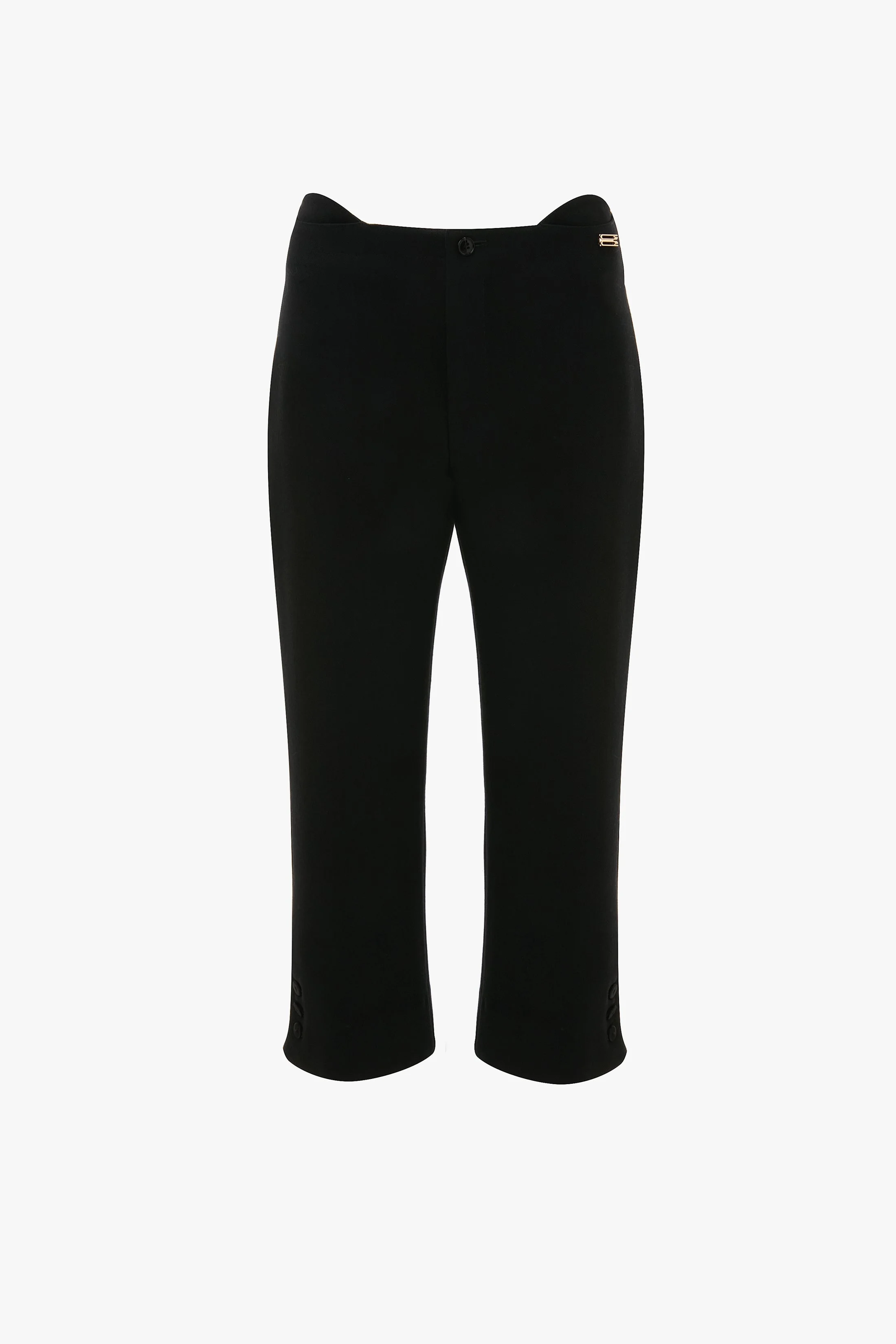 Proportion play is in the Victoria Brand DNA and the Tab Detail Cropped Trouser has an above ankle-length hemline, which creates a contemporary contrast when worn with oversized shirts and jackets. Crafted from double wool crepe, it has a mid rise cut, an attractive curved waist detail and front pockets inserted into the waistband. A metal B trim and back leg seam with a stitched detail complete the look. Styled with the Tab Detail Shirt, Polo Neck & Sloan Mule Size & Fit - Fits true to size, take your regular size Product Details - Double wool crepe fabrication - Mid rise - Front pockets inserted into waistband - Curved waist detail - Metal B trim detail on waistband - Front zip and button fastening with internal jigger button - Back leg seaming with edge stitch detail - 45% Polyester 36% Virgin Wool 16% Polyamide 3% Elastane - Dry clean only - Made in Lithuania