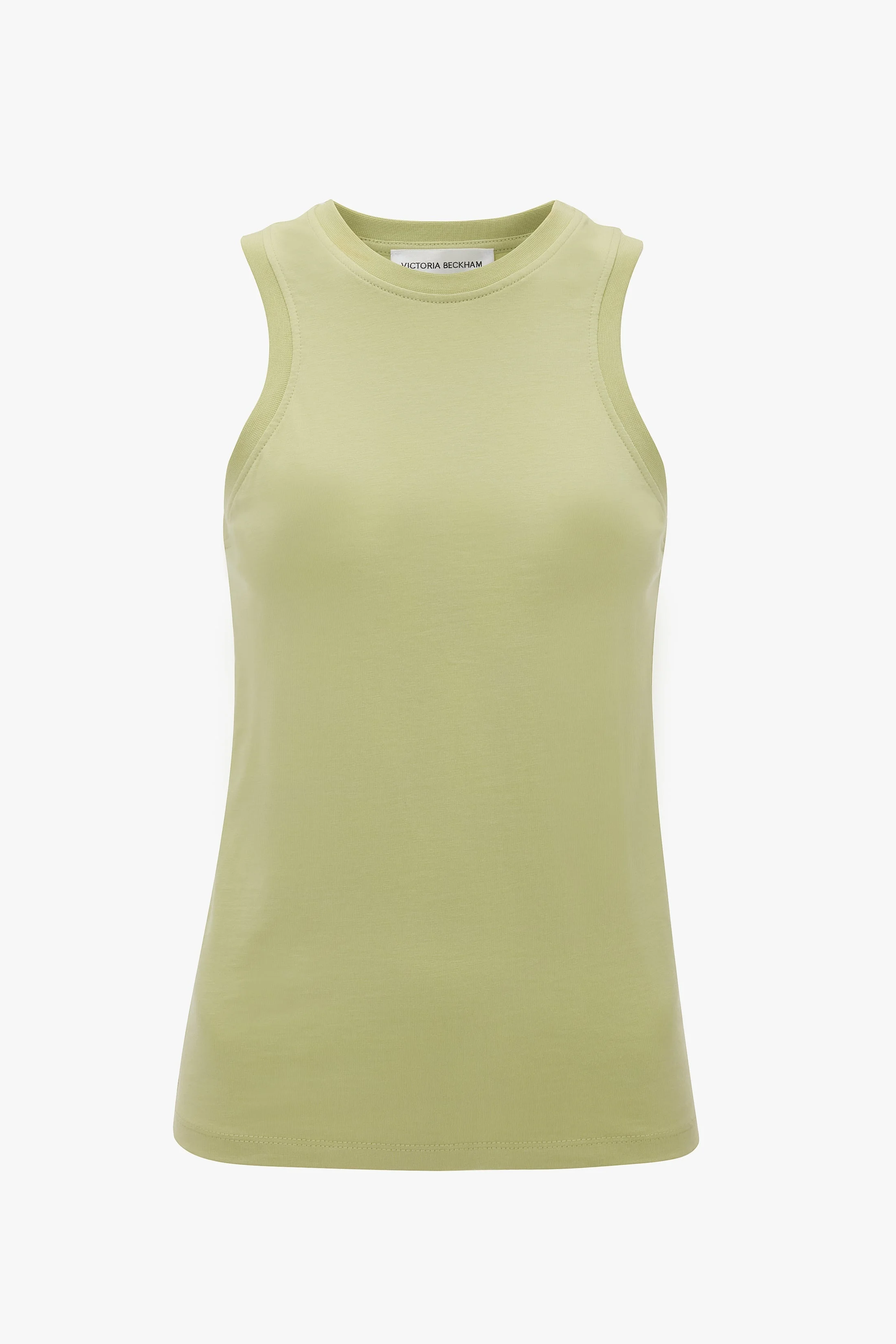 A foundational piece in any wardrobe, the Tank Top in Pistachio is made from super-soft 100% organic cotton with a ribbed neckline and armhole trims. A relaxed racer-back design brings an athleisure undertone, while a contrasting Victoria Beckham monogram at the centre back neckline adds an elevated finishing touch. Size & Fit - The model height is 5'11"/180cm and is wearing a size XS - Fits true to size, take your regular size Product Details - Organic cotton fabrication - Contrast monogram branding at centre back neckline - Ribbed neck and armhole trims - Classic round neckine - Relaxed racer back - 100% Organic Cotton - Machine wash at 30C - Made in Portugal