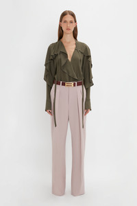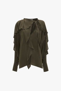 Tie Detail Ruffle Blouse in Oregano