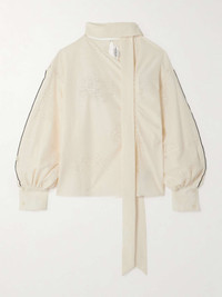Victoria Beckham's blouse is made from lightweight cotton-blend with delicate lace details, which reveal subtle hints of skin underneath. Designed for a loose fit, it has dropped sleeves and an adjustable tie that drapes down the back. Size & Fit - Fits true to size, take your normal size - Designed for a loose fit - Lightweight, non-stretchy fabric - Model is 177cm/ 5'10" and is wearing a UK 8 Details & Care - Cream cotton-blend and lace - Button-fastening keyhole at back - 75% cotton, 25% polyamide; lining: 100% polyester - Dry clean