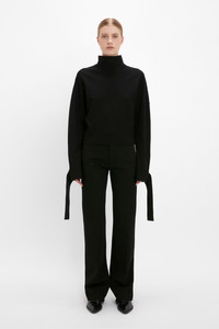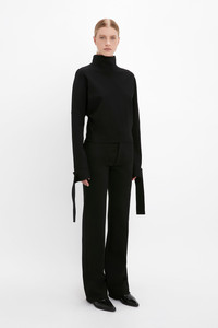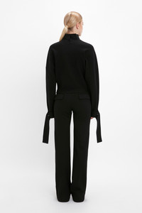 Tie Sleeve Ponti Top In Black