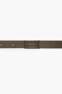 Understated refinement is a hallmark of the Victoria Beckham brand and it’s embodied in the Tonal Micro Frame Belt. With its streamlined silhouette, smooth, tactile calf leather fabrication and tonal matte finish on the B Frame hardware, it will add a polished finishing touch to utilitarian separates and masculine tailoring. Presented in Dark Khaki, it is a foundational piece for any wardrobe. Size & Fit - Small: 70cm, Width: 20mm - Medium: 80cm, Width: 20mm - Large: 90cm, Width: 20mm - Xlarge:100cm, Width 20mm Product Details - Signature B frame hardware with new matt tonal finish - Shiny calf body - 100% Calf Leather - On calf leathers, regularly apply a small amount of nourishing cream and buff gently using a cloth - Made in Italy