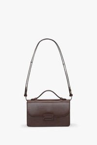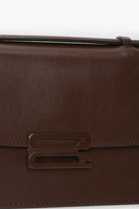 A diminutive version of the Tonal Dorian Bag, the Mini in Dark Brown smooth calf leather retains all of this iconic style’s traditional features, including the B Frame split-lock hardware with tonal matte finish, a removable and adjustable ‘smart strap’ and snap buttons for versatile styling as a shoulder or crossbody bag, microsuede lining, internal double compartment and small flat leather pocket. Referencing London’s leather goods heritage while reimagining traditional masculine design codes, it is a sophisticated addition to the Victoria Beckham leather goods archive. Size & Fit - Height: 14cm, Width: 20cm, Depth: 8cm, Drop: 49cm - longest length. Drop: 27cm - Shortest length Product Details - Signature B frame split-lock hardware with new matt tonal finish - Shiny calf body - Smart strap with snap buttons allows for both shoulder and crossbody carry - Microsuede lining - Internal double compartment - Small internal flat leather pocket - Features our signature gold branding with VB logo and a unique code - 100% Calf Leather - On calf leathers, regularly apply a small amount of nourishing cream and buff gently using a cloth - Made in Italy