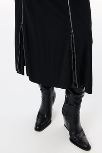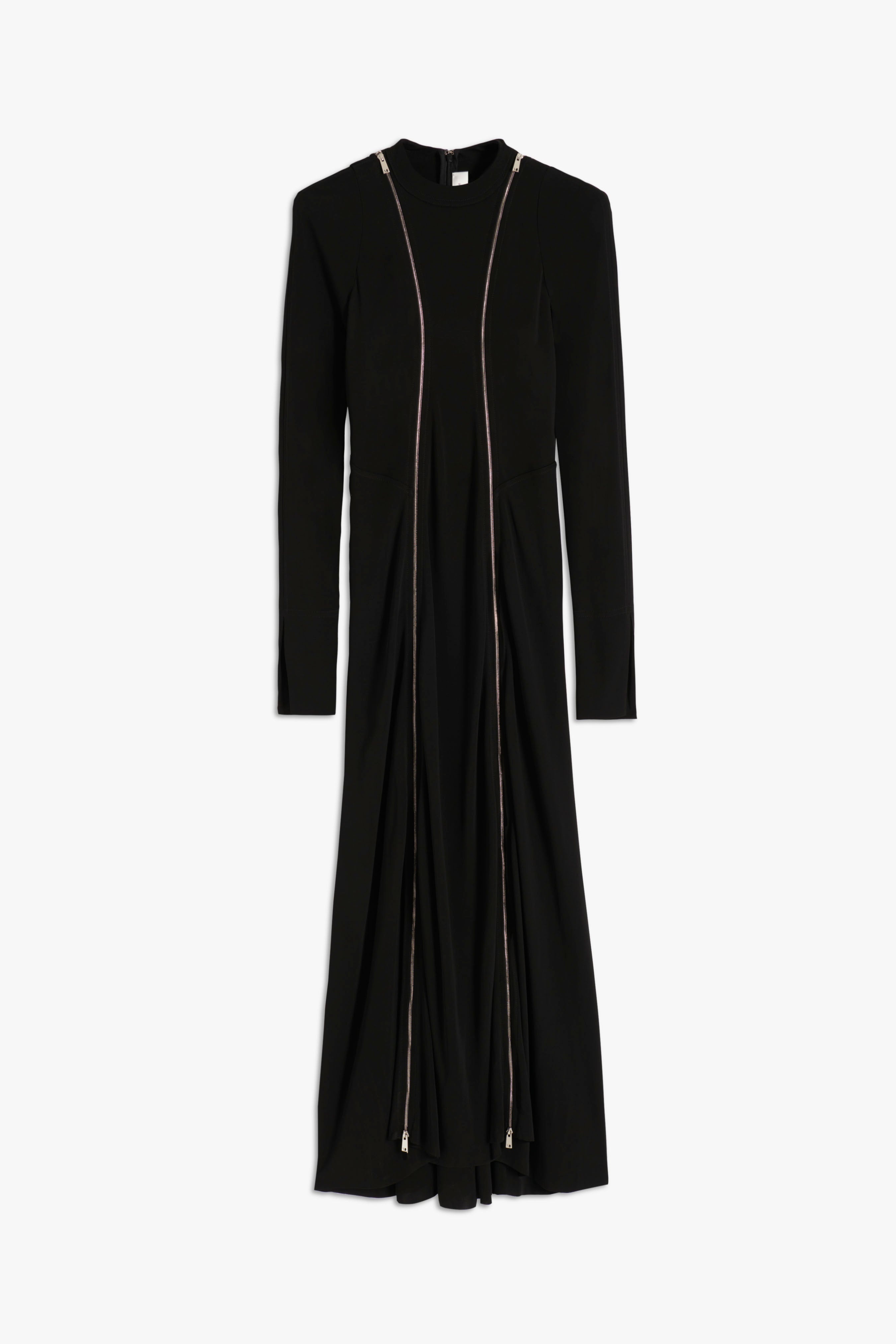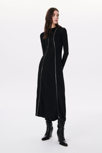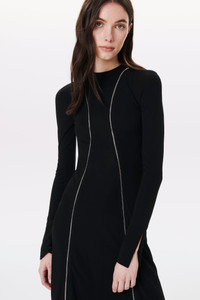 A flattering, jersey dress is a VB brand signature, and this Twin Zip Detail Dress in Black is perhaps this season's most versatile take. Made in Portugal from a fluid jersey fabrication, it has fully functional, double-ended, branded zips running down the front – a nod to the collection's utilitarian inspiration – as well as split sleeve cuffs and a banded crew neck for a cool, covered-up feel. Product Details - Fluid Jersey Fabrication - Fits true to size, take your regular size - Made in Portugal - Main: 100% Viscose - Specialised dry cleaning only, iron one dot - The model is a standard IT 40 which equals a UK size 8 - The model is a standard IT 40 which equals a UK size 8