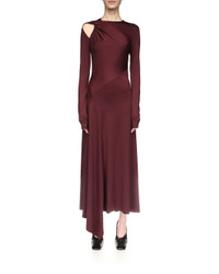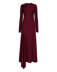 The Twist Armhole Detail Midi Dress in Merlot by Victoria Beckham is a boat neck, midi length dress featuring a cutout and twisted detail at the shoulder and asymmetrical hem crafted in a fine jersey. - 90% Polyester 10% Elastane - Made in Portugal - Dry Clean - #1425JDR00678A