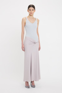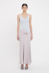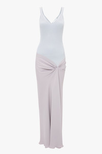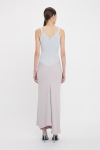 The Knit Detail Cami Midi Dress subverts athleisure influences by contrasting a ribbed tank-style top with an elegant viscose crepe skirt. Pleat detailing at the shoulders adds a decorative edge to the minimalist design, while an asymmetric pleat detail at the hips and asymmetric hemline add a directional finishing touch. The delicate shade of Heather offers versatile styling options. Size & Fit - Fits true to size, take your regular size - The model height is 5'10''/179cm and is wearing a size 6 Product Details - Knitted rib bodice - V-neckline - Pleat detail to shoulder straps - Viscose crepe skirt - Drape detail to front skirt - Asymmetric hem - Concealed zip closure at back - Fitted through body and hip - 100% Viscose - Dry clean only - Made In Turkey