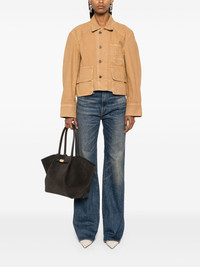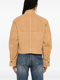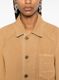 utility denim jacket Highlights - Butterscotch brown - Front button fastening - Chest patch pocket - Buttoned cuffs - Embossed logo to the front Made In Italy Composition Cotton 100% SIZE & FIT Model measurements Height 5 ft 11 in(1.8 m) Bust/Chest 31.49 in(80 cm) Hips 35.82 in(91 cm) Waist 24.8 in(63 cm) FittingInformation Designed for a relaxed fit, this piece allows for comfort and movement when worn The internal shoulder pads offer a structured shape Made from a midweight non-stretch fabric