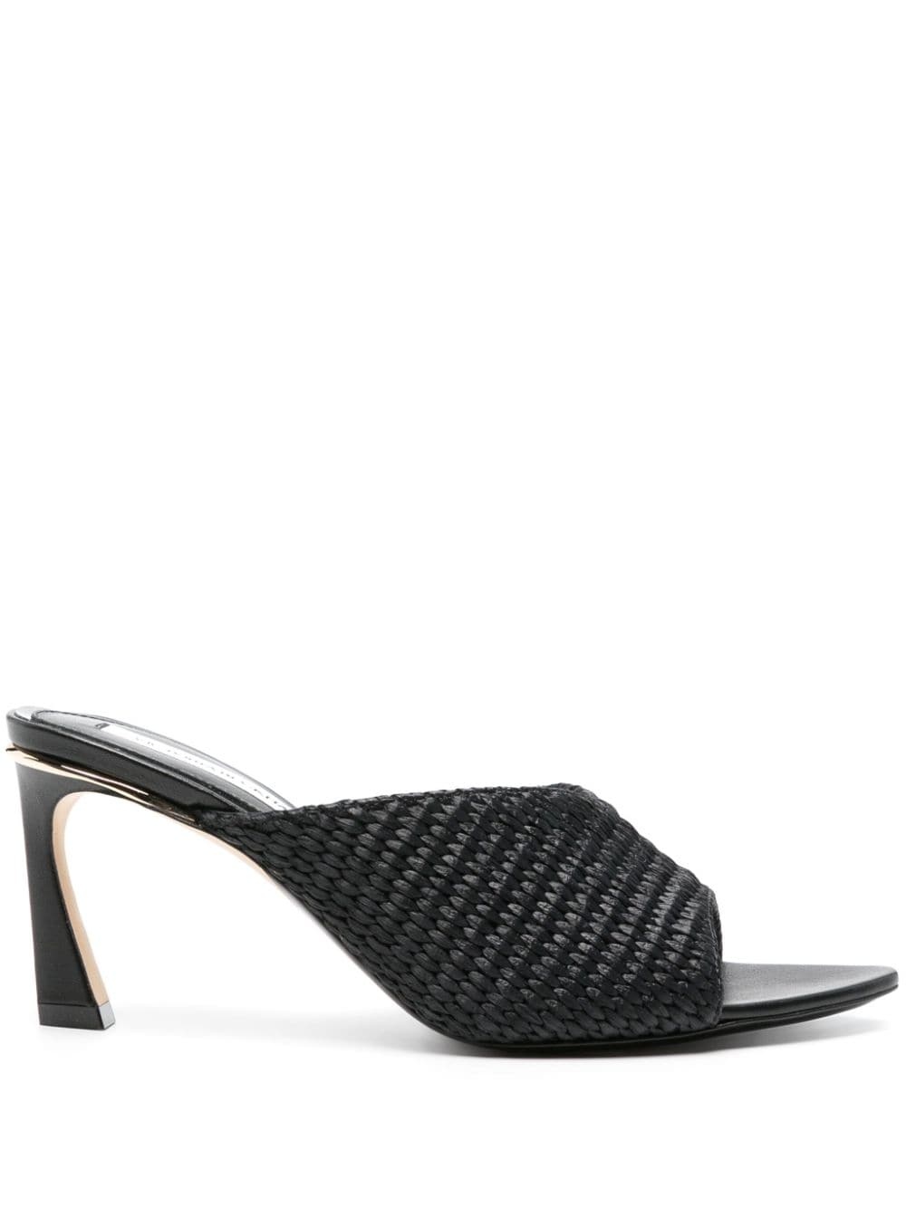 V Cut 75mm raffia-strap mules Highlights - Black - Calf leather/straw - Gold-tone hardware embellishment - Pointed open toe - Woven-raffia single toe strap - Slip-on style - 75mm mid sculpted heel - Branded leather insole Made in Italy Composition Sole: Calf Leather 100% Lining: Calf Leather 100% Outer: Straw 100% SIZE & FIT Measurement HEEL 3.34 in(8.5 cm)