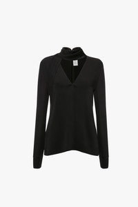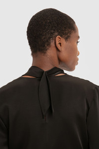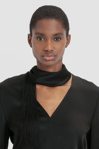 A demure design created in a delicate sheer fabric, the V-Neck Fringe Top has a fresh sophistication. A centre back slit and tactile neck fringe detail add a playful modernity. Product Details - Crepe back satin fabrication - Regular fit - V-neck at front with fringe scarf neck detail - Centre back slit with hook & eye fastening - Fits true to size, take your regular size - The model height is 177cm and is wearing a 6 - 71% Acetate 29% Viscose - Dry clean only - Made in Portugal